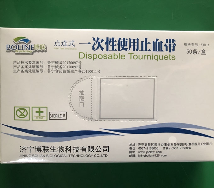 本品適用于醫(yī)療機構在常規(guī)治療及救治中輸液、抽血、輸血,止血時一次性使用;或肢體出血、野外蛇蟲咬傷出血時的應急止血。